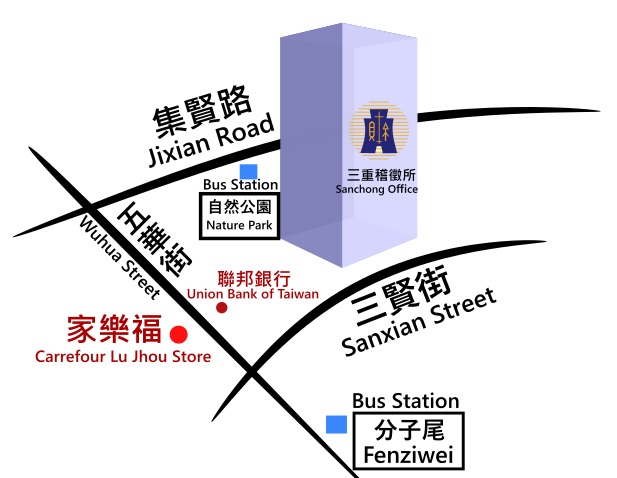 022389-1052 聯絡我們意見信箱 臺北國稅局 稅務小精靈fb 國地稅免付費電話. 請民眾多加利用本處官網 線上申辦 新北稅視訊櫃檯 及 話務中心 總機. 台北橋捷運站 1 轉搭617622至行政院新莊聯合辦公大樓中平路站下車 詳情請上大臺北公車路線暨大眾運輸轉乘查詢系統網站查詢 桃園捷運.
